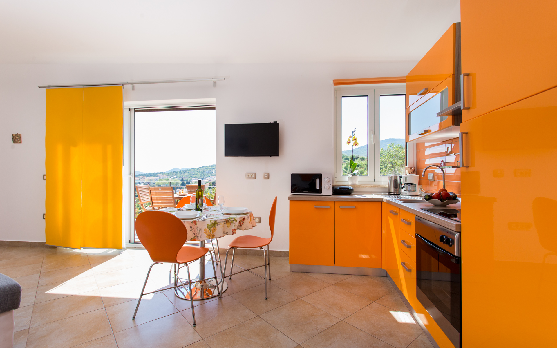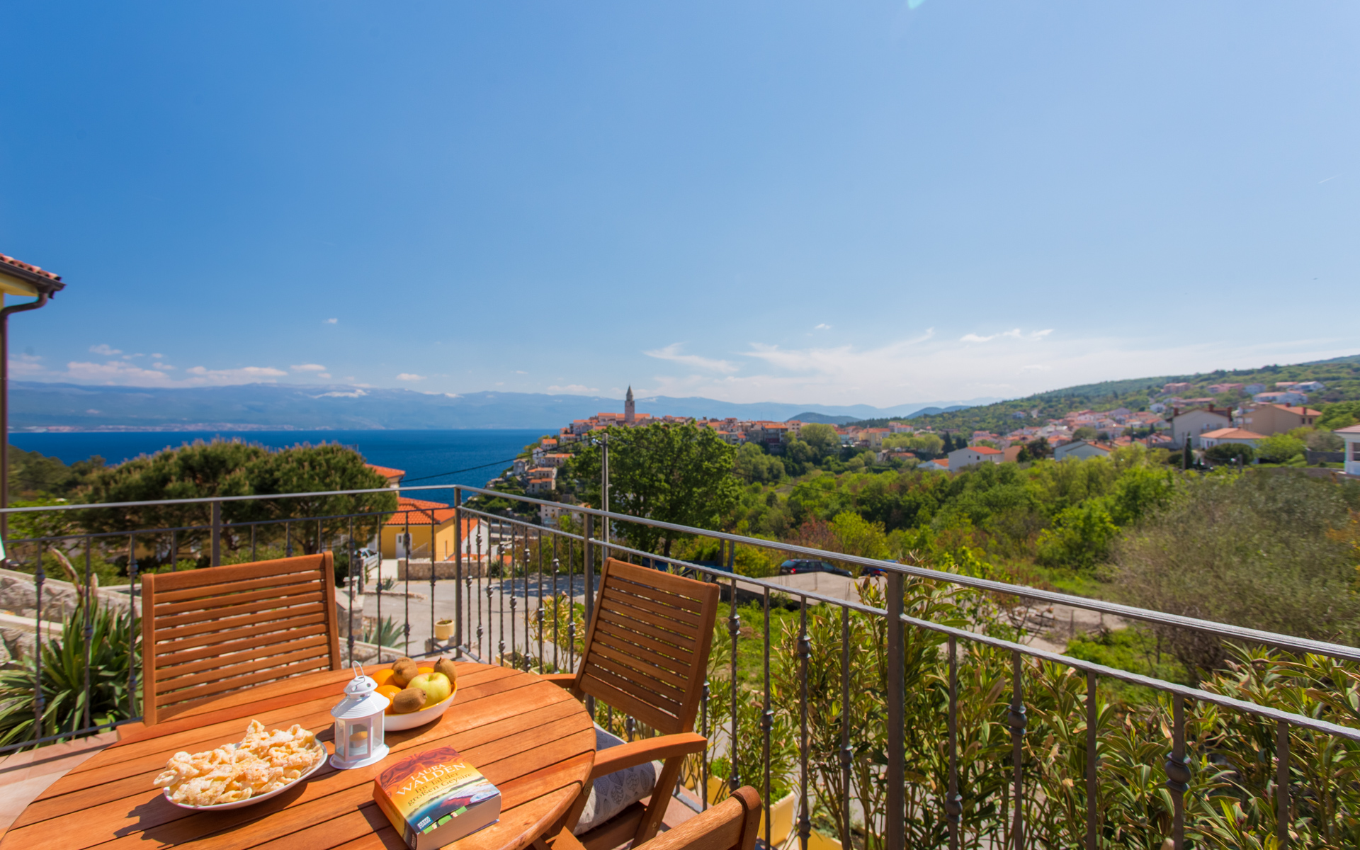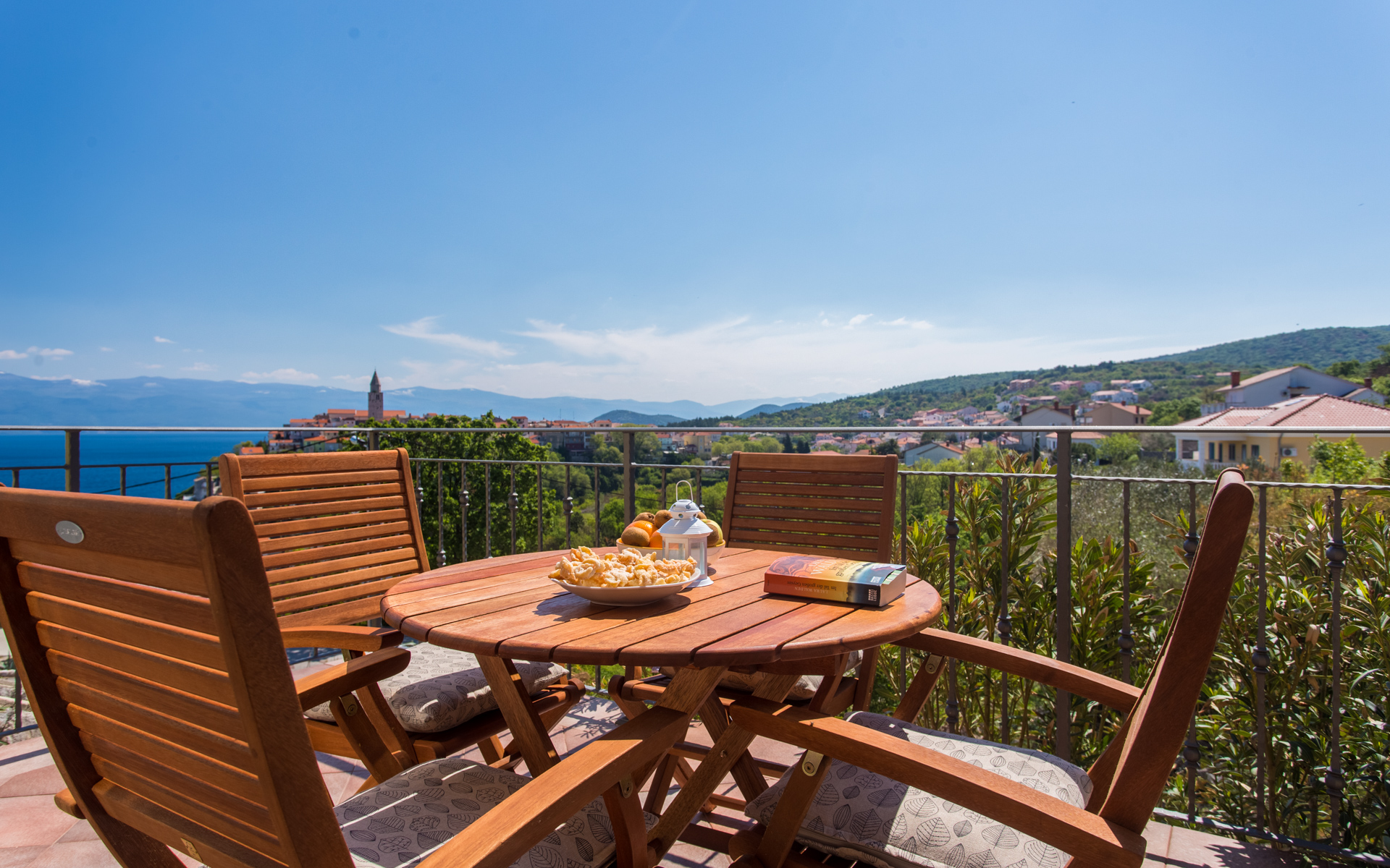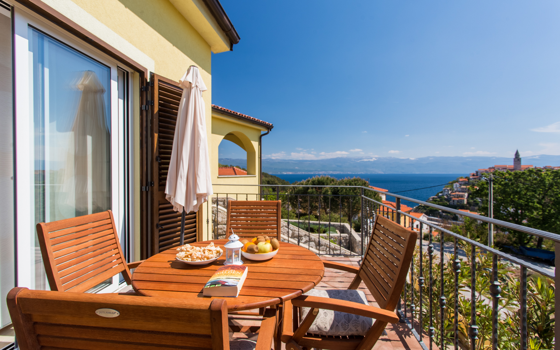 Apartments Ulikva are located in quiet part of Vrbnik surrounded with olive trees. The house consists of two apartments on the first floor and owner apartment on the ground floor. From the terraces of both apartments beautiful panoramic view extends from the old city and sea to the mountain Velebit. It is a charming combination of history, blue sea and unspoiled nature.