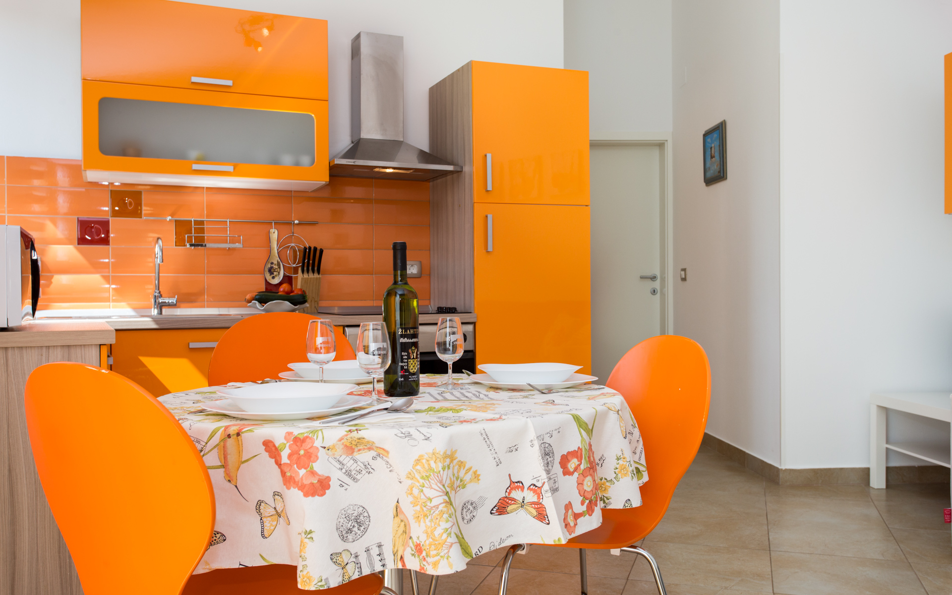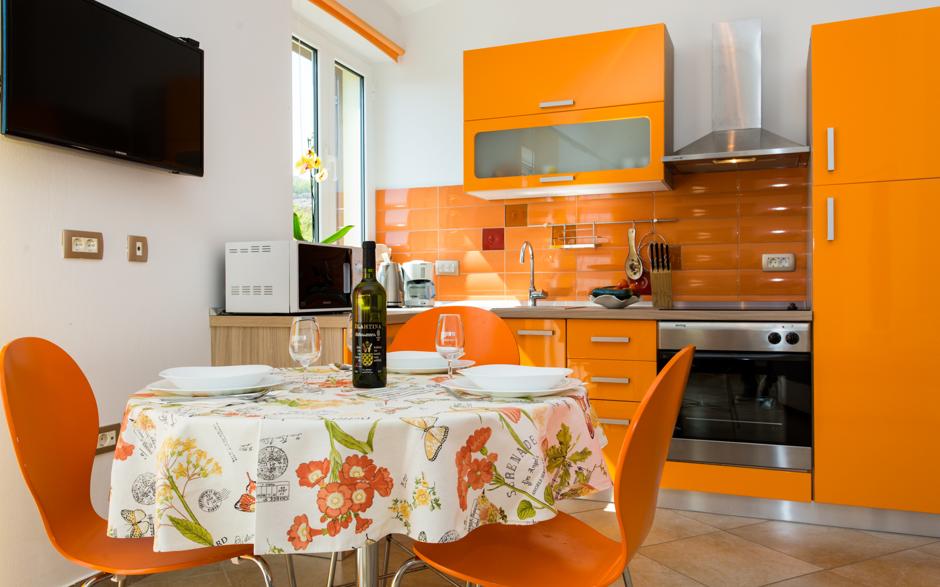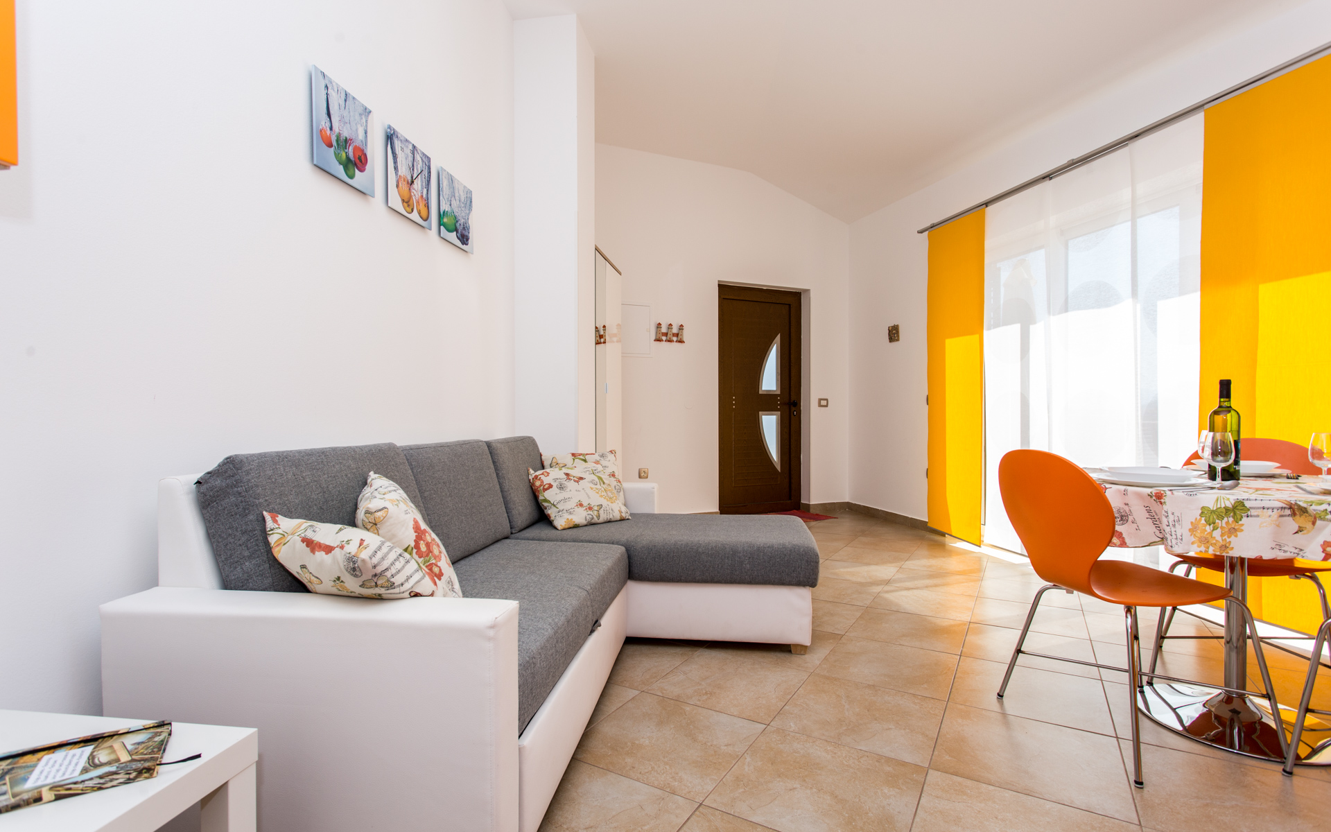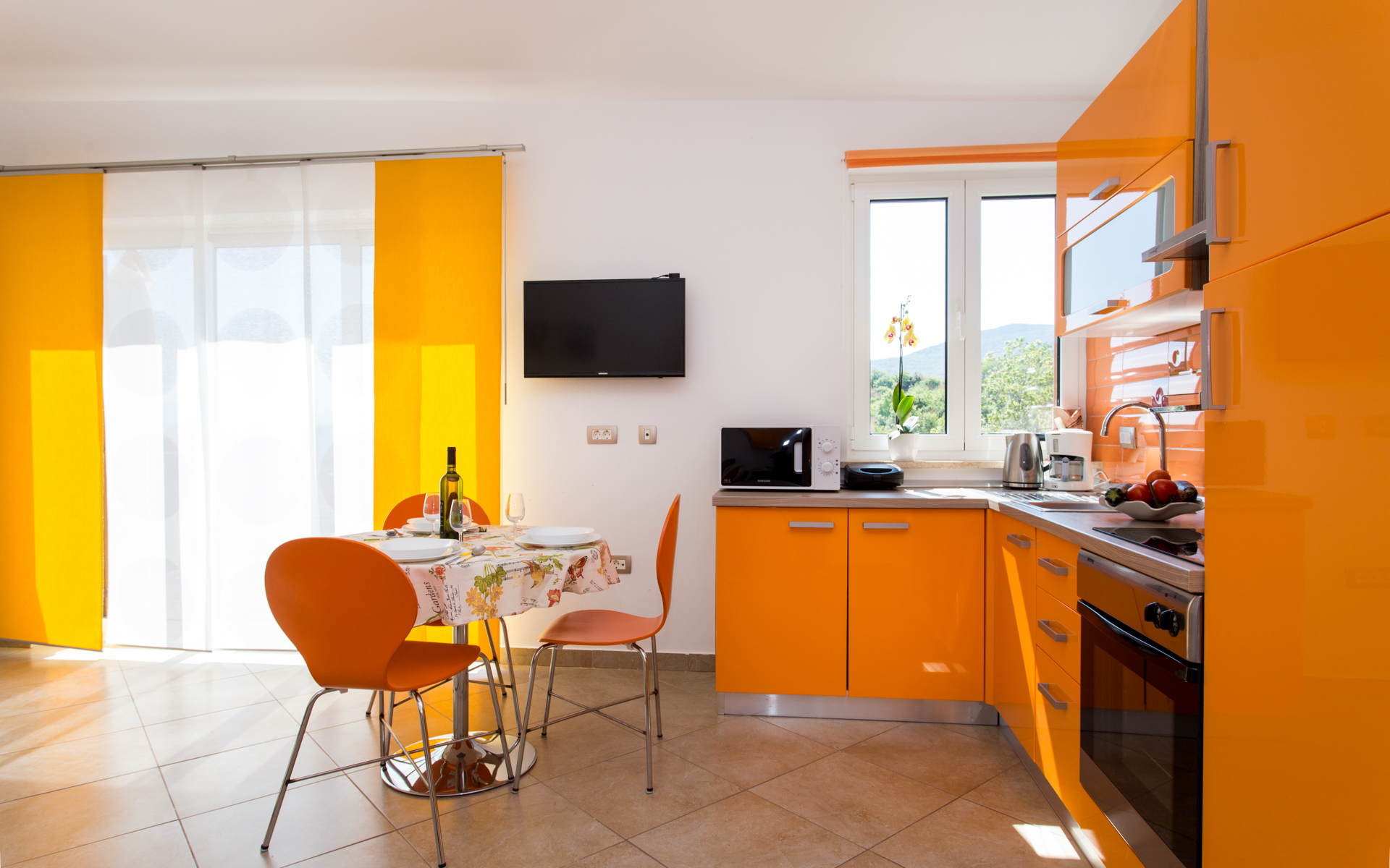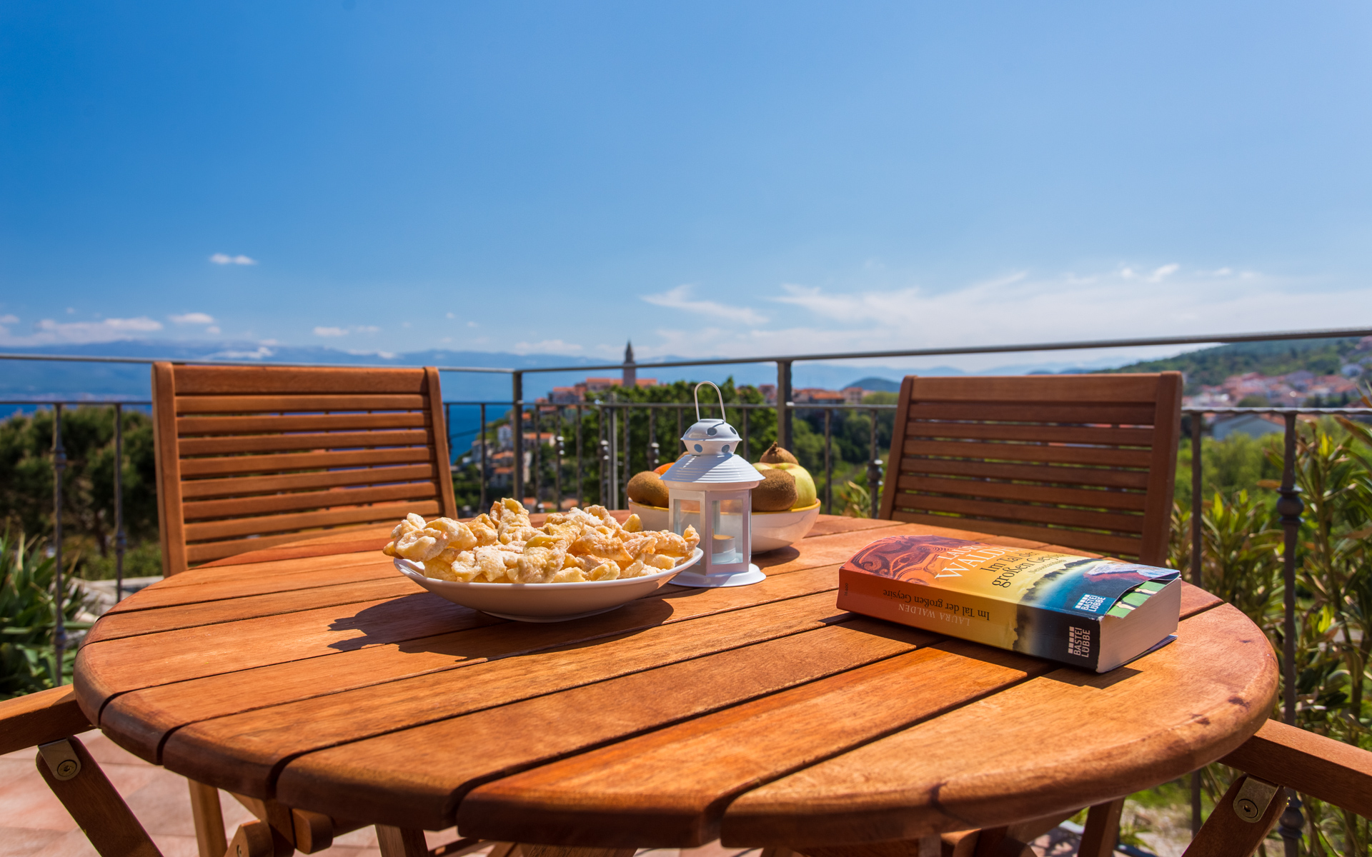 Apartments Ulikva are located in quiet part of Vrbnik surrounded with olive trees. The house consists of two apartments on the first floor and owner apartment on the ground floor. From the terraces of both apartments beautiful panoramic view extends from the old city and sea to the mountain Velebit. It is a charming combination of history, blue sea and unspoiled nature.